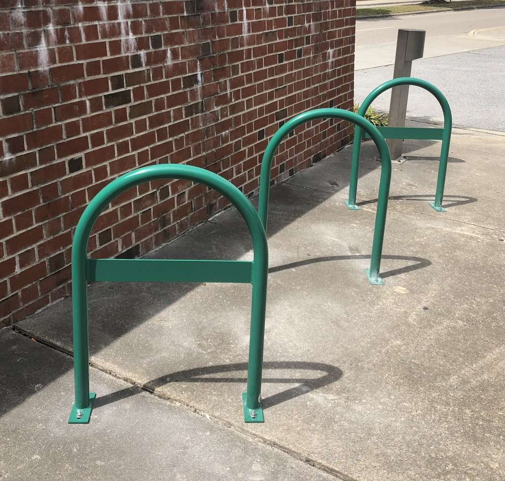 Please fill out the form below, and if we determine your business or institution is a feasible location for a new rack (existing or available space, feasibility) we will provide 1-2 hoop-shaped bicycle racks and facilitate installation with the road or property owner. The property owner may be you, but it could also be NCDOT, the City of Greenville, or ECU. You are encouraged to apply in conjunction with nearby local business owners!